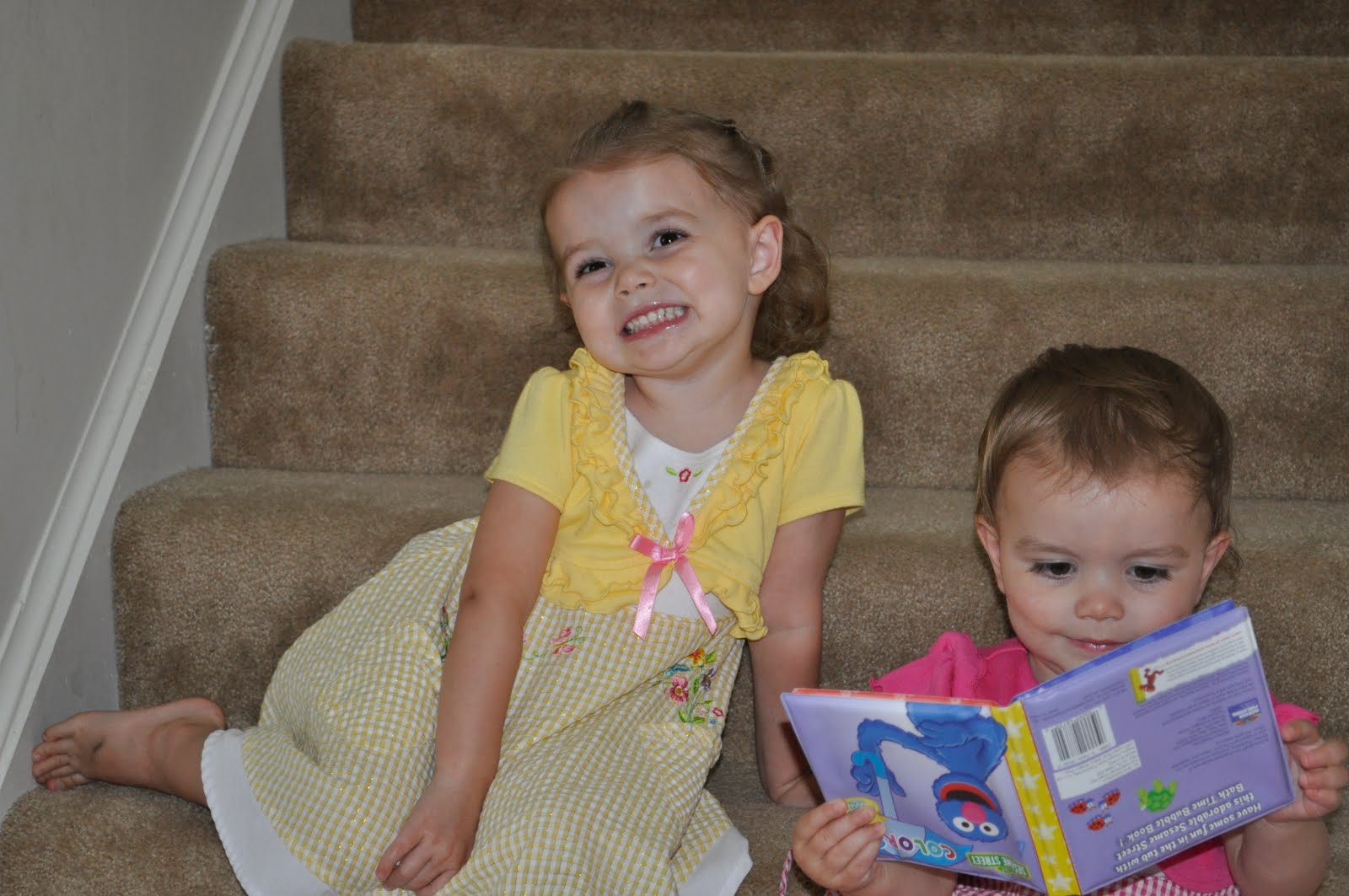 I love Emma's yellow dress and Mary's pink dress. They are so cute! I also love the little walk Emma is doing at the bowling alley. What a goof-ball.